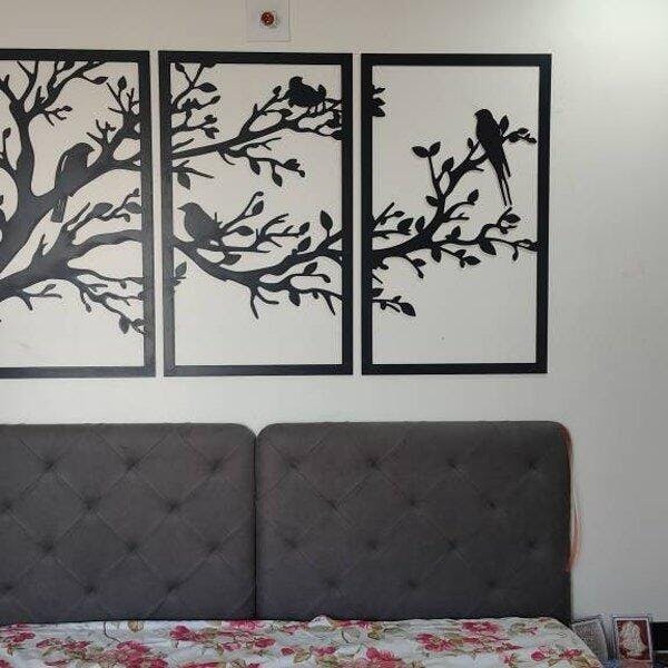 - Decorate your Empty WallsComes with double sided adhesiveBirds on Tree Branches Wall Art laser cut wooden wall art decor 3 tree wall art wall decor, home decor, decorative wall panels3 mm sheet usedblack colorcan be paste on any surface. tiles, paint, wall, wood, Metal , mirror, glass