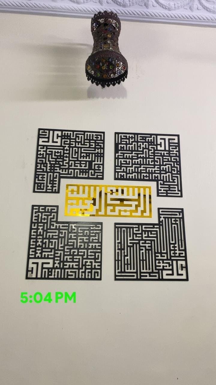 Kufic 4 Qul Islamic Wall Decor Acrylic & MDF Black & Golden
