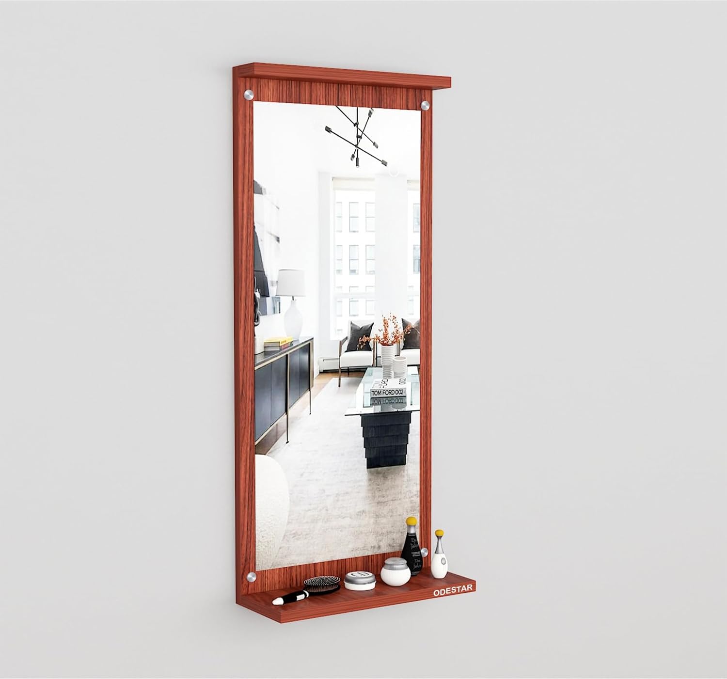 Rectangular White Wooden Wall Mirror for Living Room Bedroom Bathroom Modern Design Durable Build, Makeup Mirror, Rectangular Size Classic with 2 large Shelf